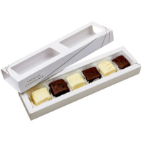 Каждая конфета ручной работы в этом лаконичном наборе — это восторг для истинных гурманов. Нежный марципан в начинке обрамляется молочным или белым шоколадом, создавая обволакивающую мягкую сладость. Молочный шоколад добавляет к нежному вкусу марципана едва уловимую сладость и кремовую глубину, а белый — подчеркивает яркие миндальные нотки.