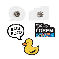 Металлический значок Essence с сублимационной печатью на магнитной застежке.